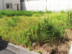 箕面市のお客様所有の空き地の管理ですが、ご近所様にご迷惑おかけするとのことでしたので、年3回の除草剤散布を行っております。